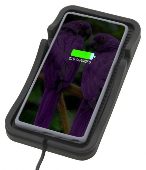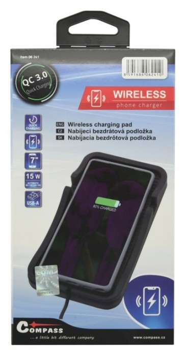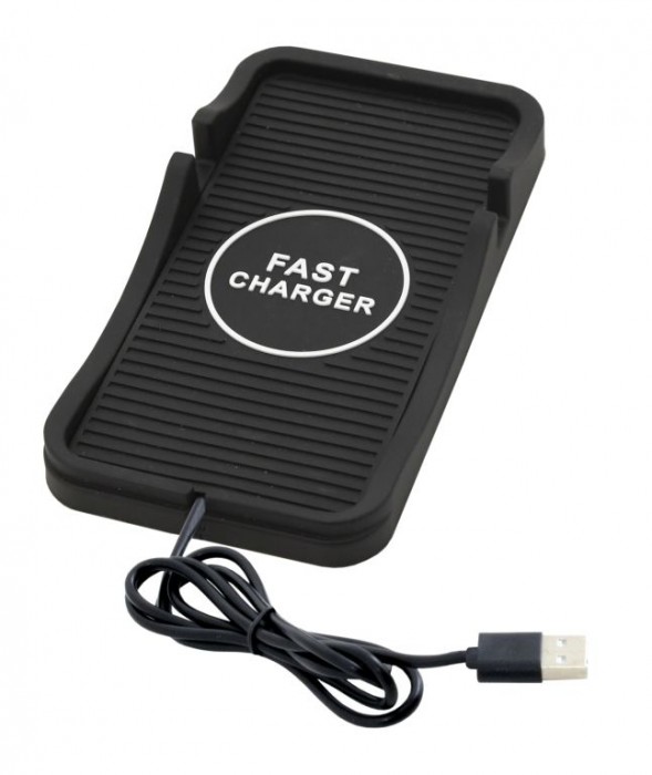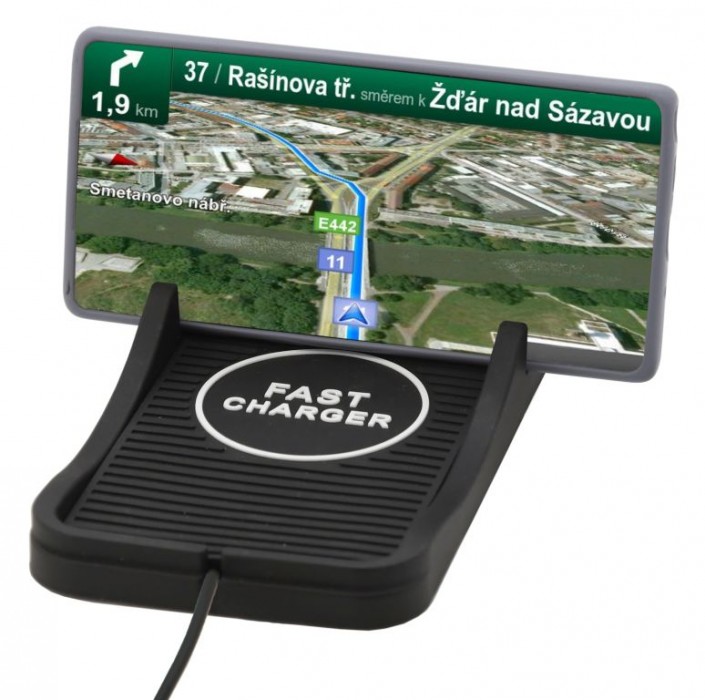Podložka pro telefon s bezdrátovým Qi nabíjením. Technologie zařízení propůjčuje rychlé nabíjení s výkonem až 15W. Na podložku stačí mobilní telefon (podporující bezdrátové nabíjení) položit, poté se téměř okamžitě začne nabíjet. Podložka je opatřena protiskluzovou úpravou a je vhodná pro telefony s max. úhlopříčkou 7". Telefon je rovněž možné postavit a podložku použít jasko držák, např. pro sledování filmů či sledování navigace. Napájení je řešeno pomocí USB-A konektoru, zařízení tak lze použít v kanceláři i ve vozidlech opatřených USB-A konektorem. Pro vysoké rychlosti nabíjení je potřeba použít zdroj s podporou QC2.0 / QC3.0