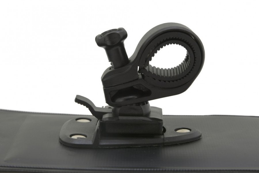 Uchycení na řidítka jízdního kola je řešeno pomocí držáku s protiskluzovými pásky (na trubku max. 30 mm). Konstrukce držáku rovněž umožňuje otáčení a mírný náklon, pro aretaci telefonu v požadované poloze.