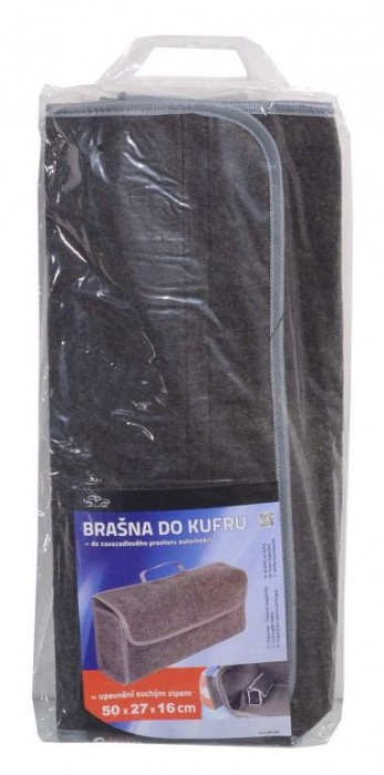 Univerzální textilní brašna, určená především do zavazadlového prostoru osobního automobilu. Uzavíratelná na suchý zip, snadno přenosná díky uchu na horní straně. Pásy suchého zipu na zadní straně pro snadné přichycení do zavazadlového prostoru automobilu.