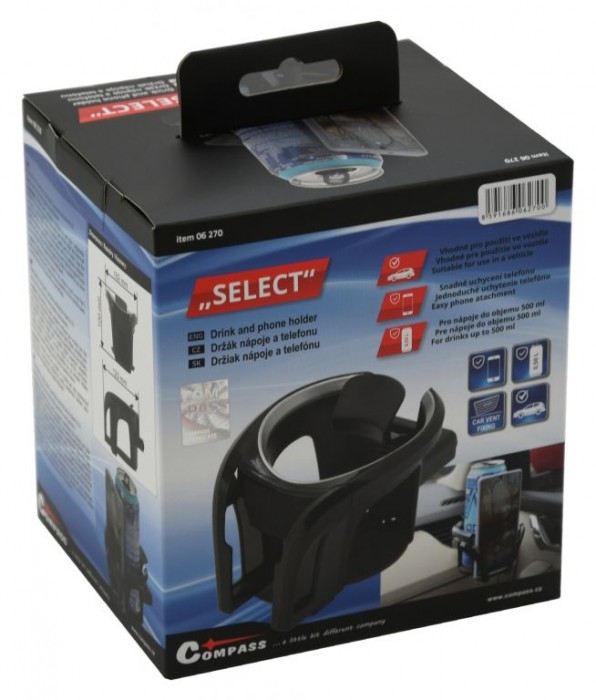 Držák je vhodný pro umístění telefonu a nápoje současně. Telefon lze jednoduše do držáku vložit jednou rukou a i přesto je zabezpečen před nechtěným pohybem pomocí pružinového systému. Nápoje jsou rovněž zajištěny před volným pohybem a vylitím. K držáku je pro úspěšnou a snadnou instalaci přiložena sada nastavitelých adaptérů do mřížky ventilace, sada k přímému uchycení za mřížku ventilace a podpěra se samolepící vrstvou. Konstrukce zabezpečuje vysokou stabilitu a díky použití podpěry rovnoměrně rozděluje zatížení a brání tak poškození mřížky ventilace.
