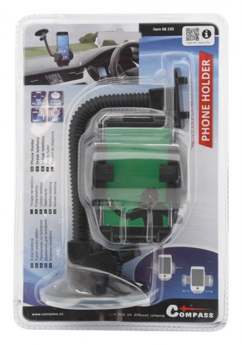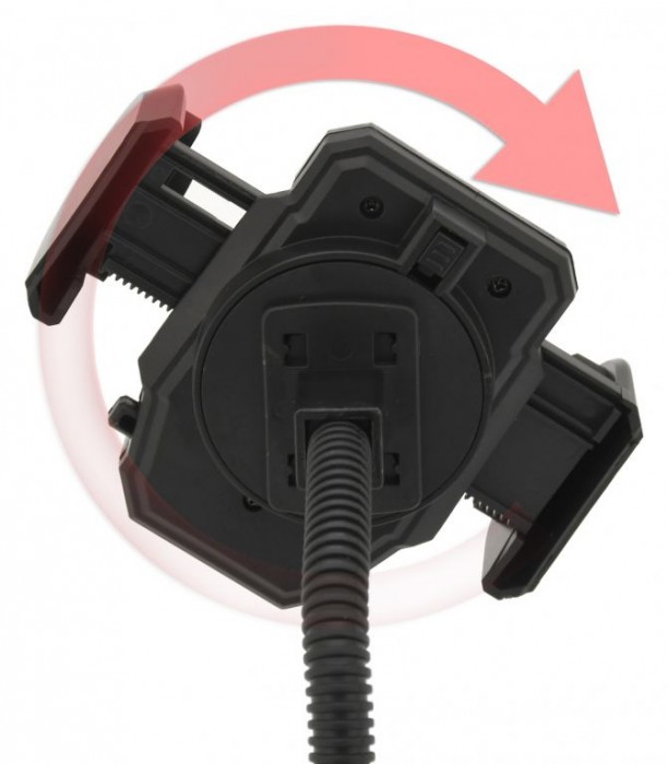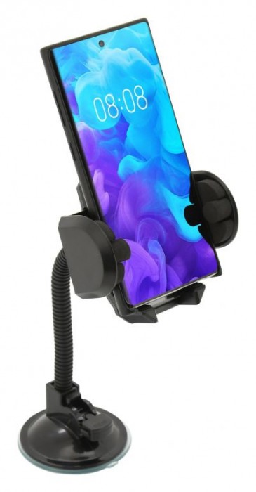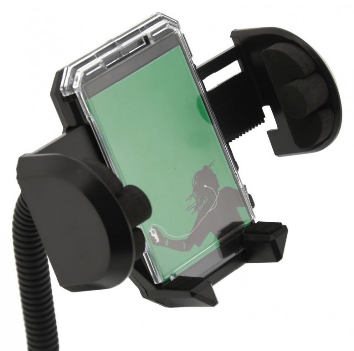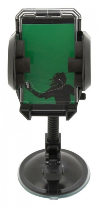 Držák s extra silnou přísavkou, pro uchycení telefonu. Šířku lze zvětšit stisknutím bočního tlačítka, telefon se poté umístí do držáku a ten se poté zajistí stiskem čelistí. Díky uzamykatelnému otáčení o 360° a flexibilnímu ramenu držáku, je možné snadno nastavit vhodnou polohu telefonu. Telefon v klipsu pevně drží díky důmyslnému mechanismu, proti poškrábání je upnutý telefon chráněn pěnovými prvky.