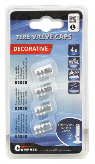 Popis: Compass Ozdobné kryty ventilků stříbrné, 4ks