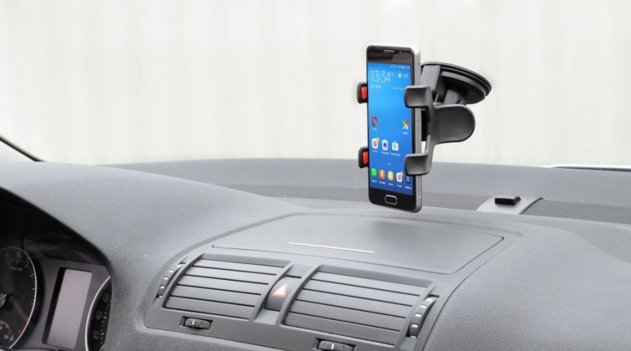 Držák telefonu s extra silnou přísavkou a klipsem pro uchycení telefonu či navigace až do šířky (nebo výšky) 9 cm. Telefon v klipsu pevně drží pomocí silné pružiny, a proti pohybu je zajištěn pomocí protiskluzové vrstvy uvnitř klipsu.
