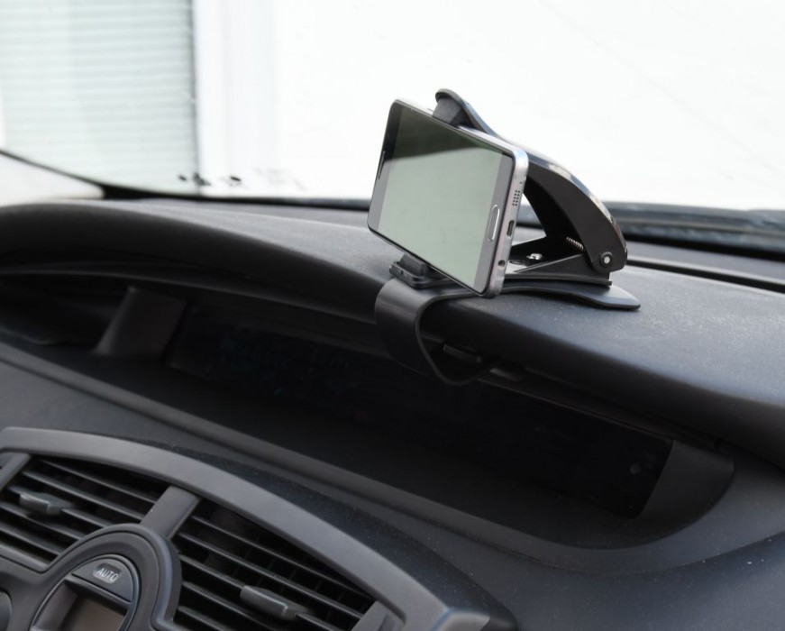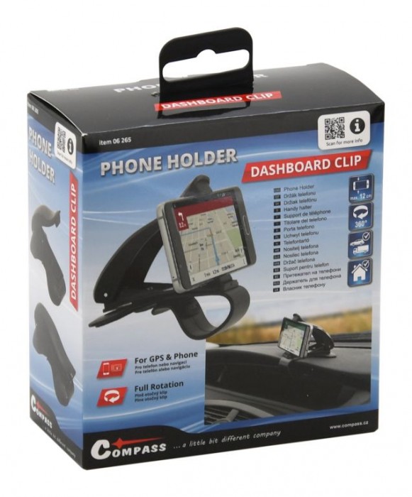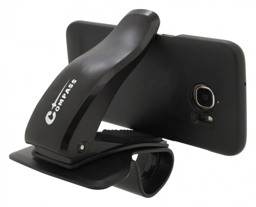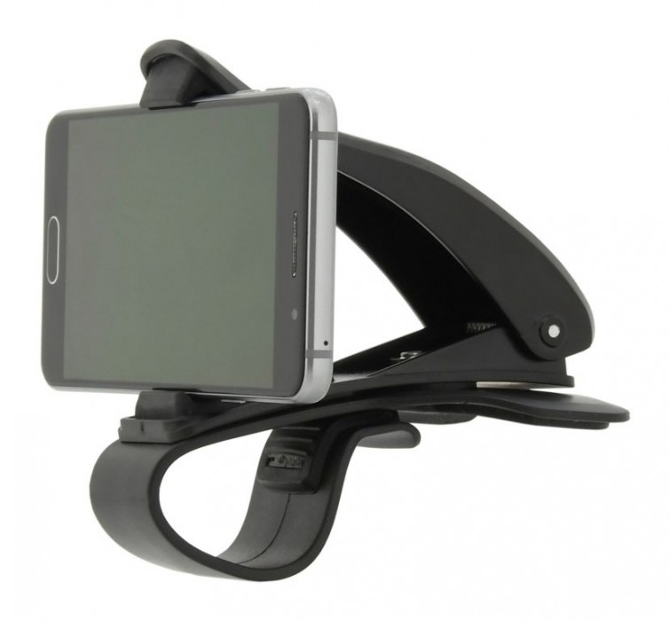 Držák je možné nasunout na výstupek palubní desky, nebo např. na hranu stolu či poličky. Telefon se do držáku upevní po rozevření horního klipu. Celý horní klip je otočný a umožňuje tak snadno nastavit ideální polohu telefonu. Je možné jej použít pro zařízení široká až 12 cm.