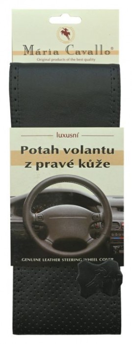 Potah volantu z pravé kůže s nejvyšší kvalitou zpracování. Kůže je příjemná na dotek a brání klouzání rukou, nepřehřívá se na přímém slunci a naopak v zimě vytváří pocit tepla. Mikroporézní vrstva na vnitřní straně potahu navíc tlumí vibrace, potah celkově změkčuje úchop a poskytuje maximální komfort pro použití. Sada obsahuje samotný kožený potah, pevnou černou šňůru a jehlu pro snadné a kvalitní upevnění k volantu. Ke každému balení je rovněž přiložen přehledný návod na montáž. Kůže je upravena tak, že nepraská ani po mnoha letech a není třeba jí žádným zvláštním způsobem ošetřovat. Technické řešení potahu je zapsáno Úřadem průmyslového vlastnictví jako užitkový vzor (patentováno) v České i Slovenské republice.