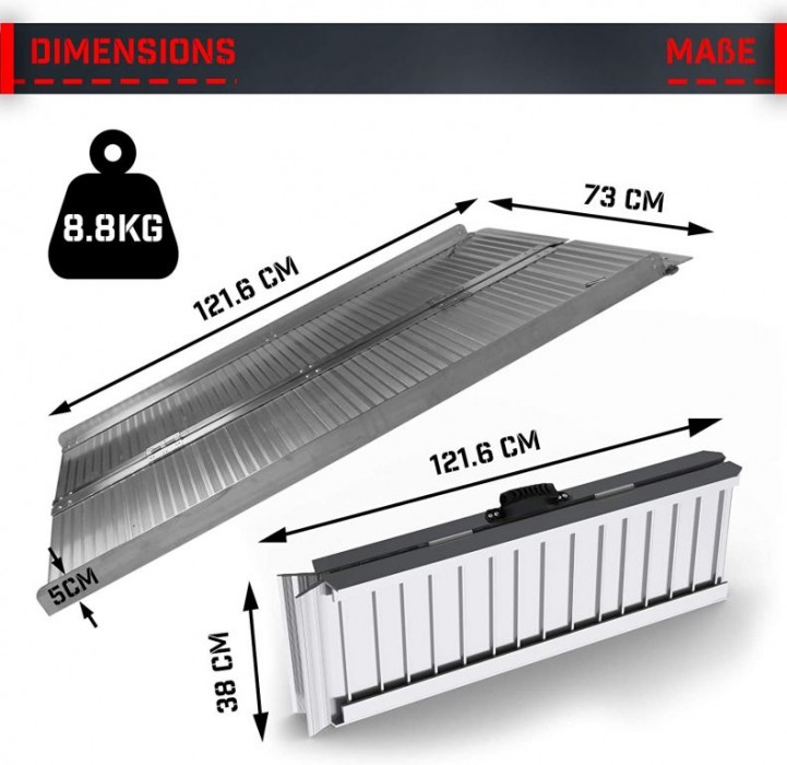 - 1 x skládací nájezdová hliníková rampa 122 cm délka