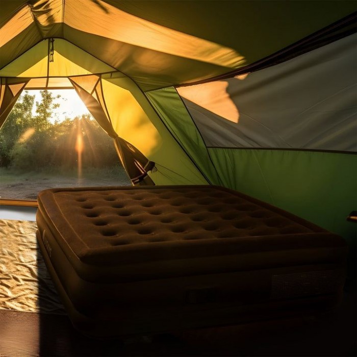 - Okamžitý komfort – matrace se díky integrované pumpě nafoukne během chvilky bez námahy.