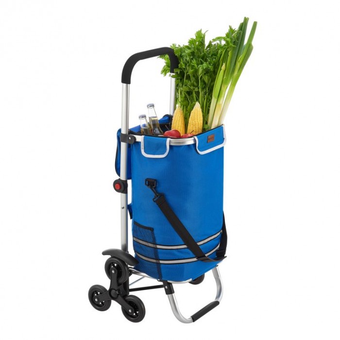 Nákupní vozík 3 v 1 na schody - objem 56 l, modrý