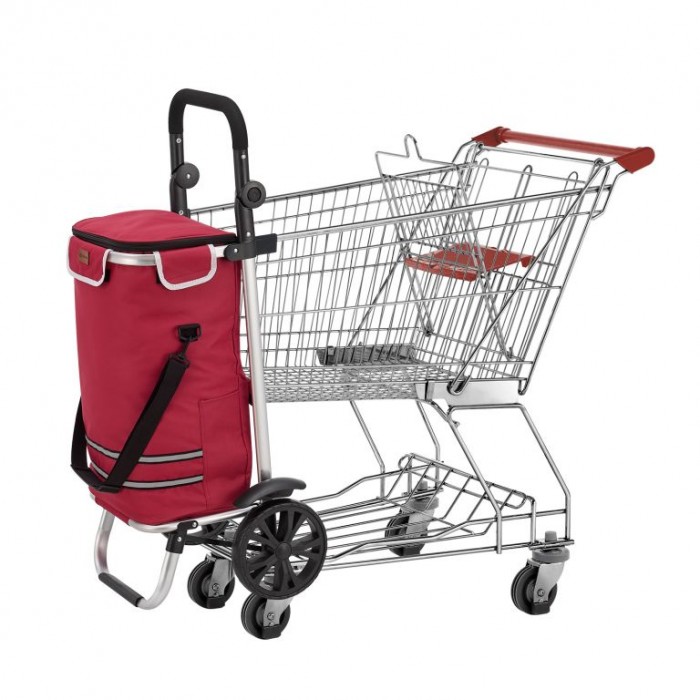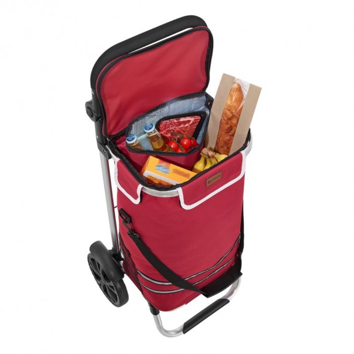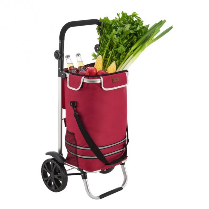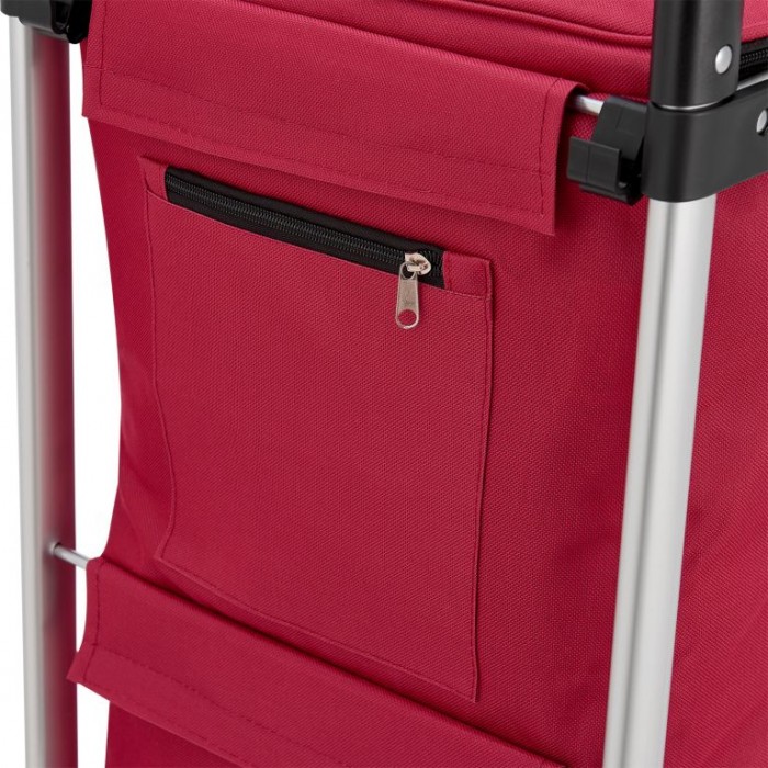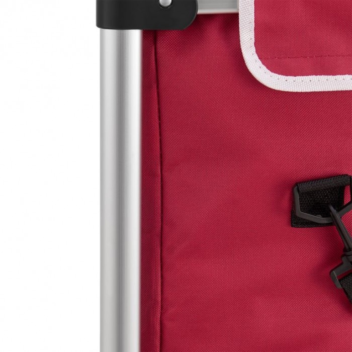 Užijte si pohodlné nakupování bez námahy! Tento stylový červený nákupní vozík vám umožní přenášet těžké nákupy snadno a bez zbytečné námahy. Praktická boční kapsa je ideální na láhev s vodou nebo drobnosti, které chcete mít po ruce. Vozík je skvělým pomocníkem nejen při nákupech, ale i na cestách na trh či do parku.
