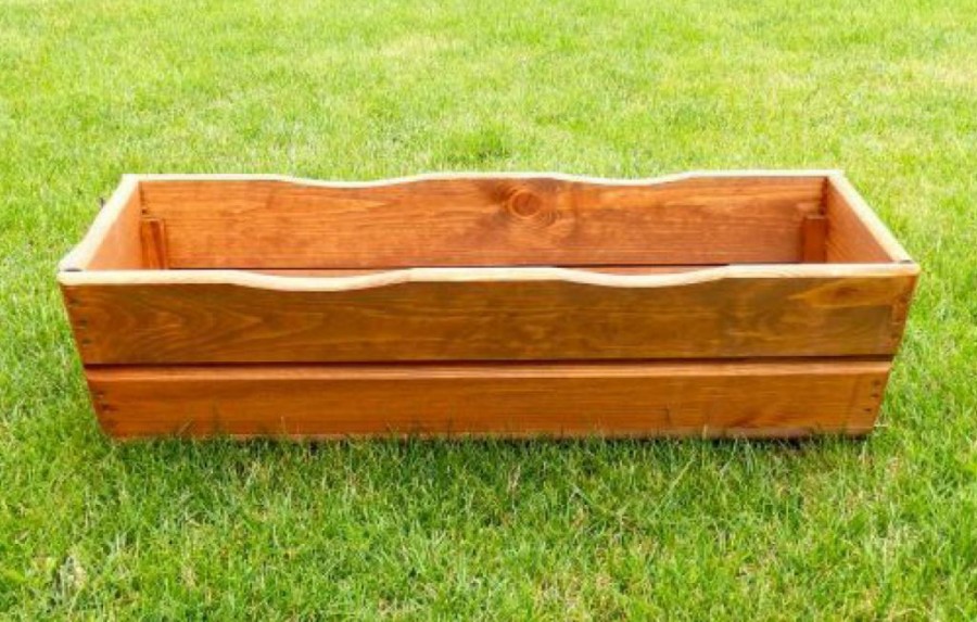 Dřevěný truhlík v hnědém provedení o délce 64 cm. Vhodný na pěstování rostlin na zahradě, terase či na balkoně.