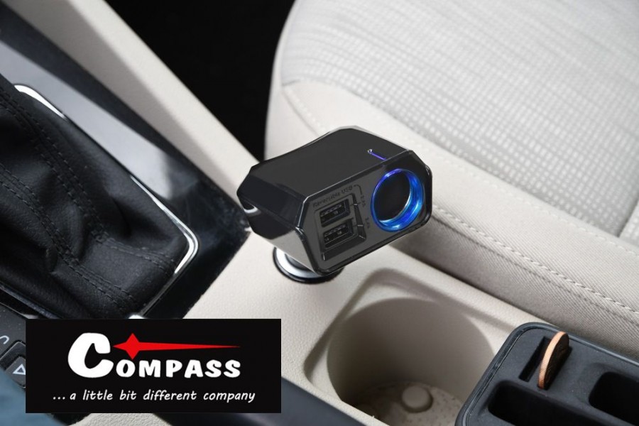 Nabíjecí adaptér pro napájení pomocí DUAL-SIDE USB a 12V zařízení ze zásuvky automobilového zapalovače.