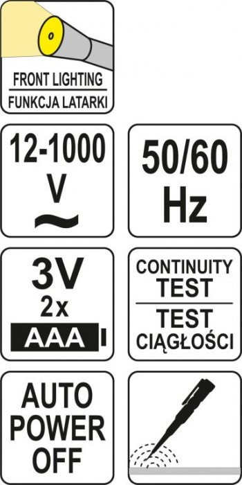 Navrženo pro detekci napětí v elektrických vodičích. Na principu indukce bezdotykově indikuje, zda jsou vodiče pod napětím.| Technická data | |