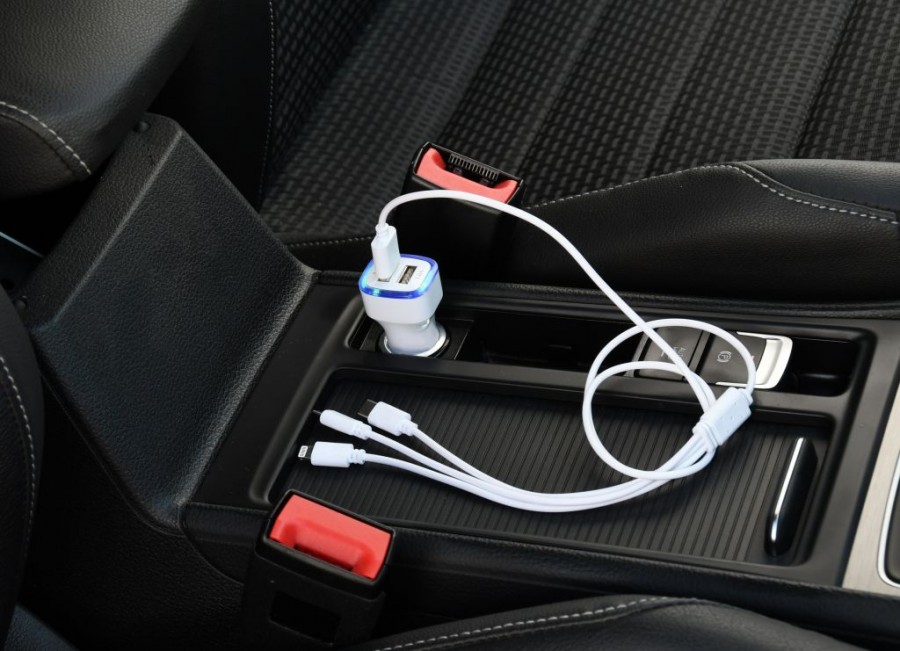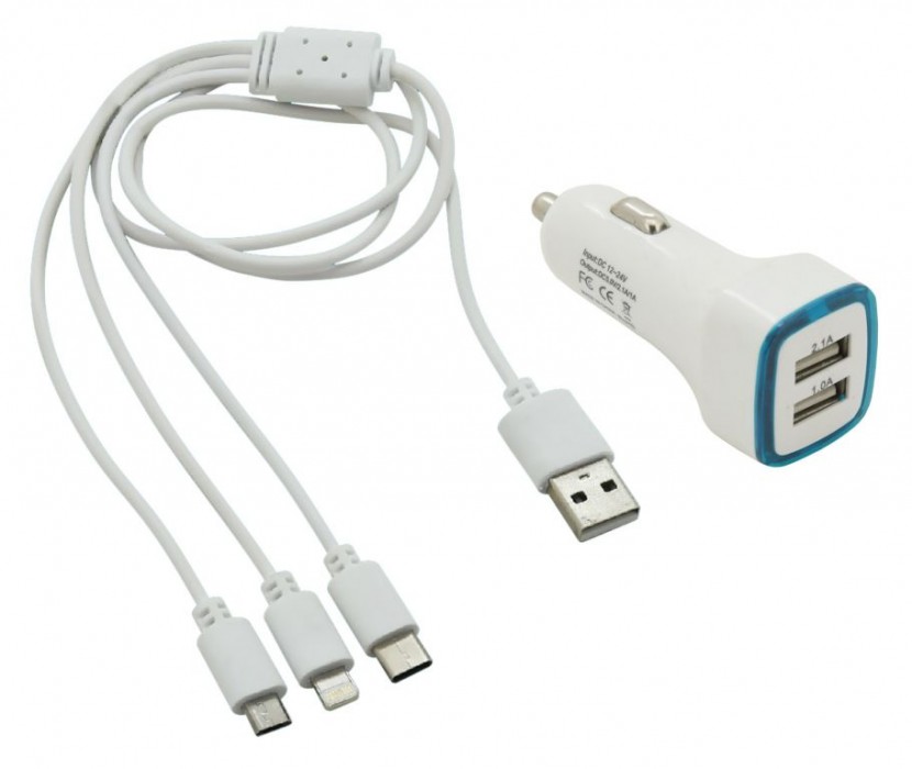 Nabíječka, USB zástrčka pro 12V či 24V zásuvky automobilového zapalovače. Sada mimo USB zástrčku obsahuje také napájecí kabel 3in1 pro iPhone, microUSB a USB C. Vhodné pro MP3 přehrávače, mobilní telefony a další zařízení, která se nabíjejí či napájejí běžným USB zdrojem 5V až do příkonu 2100mA.