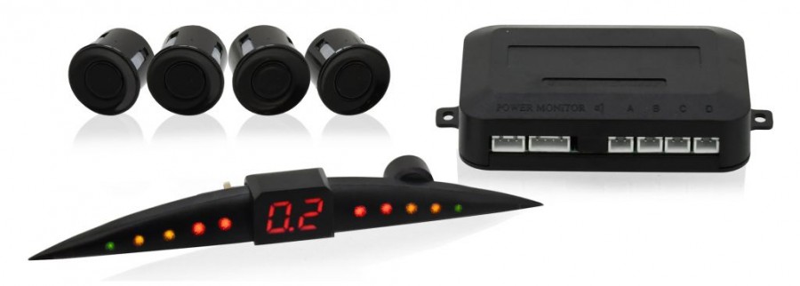 Parkovací asistent s LED displejem a s číselným ukazatelem pro komfortní vizuální signalizaci vzdálenosti od překážky. Funguje na principu ultrazvukových vln přenesených pomocí senzorů v zadním nárazníku. Aktivuje se zařazením zpátečky. Podle informací na displeji a pípání zvukového signálu je řidič informován o vzdálenosti od překážky, zvukový signál je možné na vrchní straně displeje pomocí přepínače vypnout. Balení obsahuje displej, řídící jednotku, 4 senzory pro montáž do zadního nárazníku, odpovídající kabeláž a vrták odpovídajícího průměru.