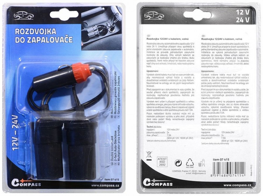 Popis: Rozdvojka 12/24 V s kabelem, volná