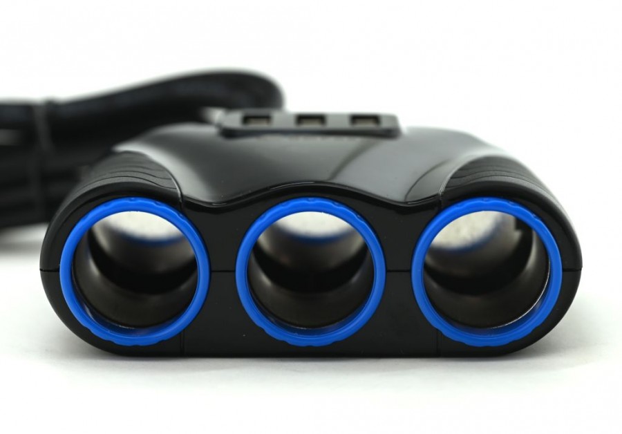 Roztrojka zásuvky automobilového zapalovače 12/24 V s 3x USB konektorem, umožňuje připojení více spotřebičů k jedné standardní zásuvce zapalovače v automobilu a zároveň napájet či nabíjet USB zařízení z 12V či 24 V zásuvky automobilového zapalovače. Instalace se provede jednoduchým zasunutím roztrojky do zásuvky.
