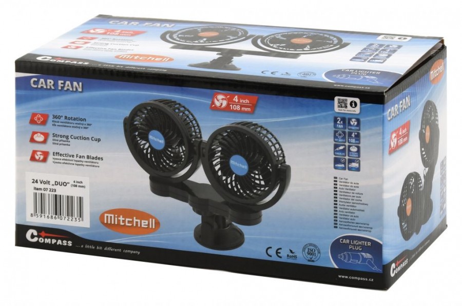 Popis: Ventilátor MITCHELL DUO - 12V, na přísavku