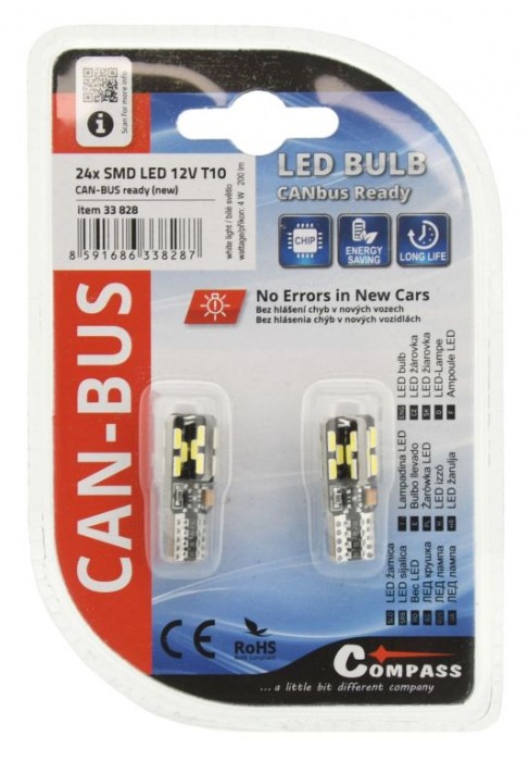 Popis: Žárovka 24 LED 12V T10 NEW-CAN-BUS bílá 2ks