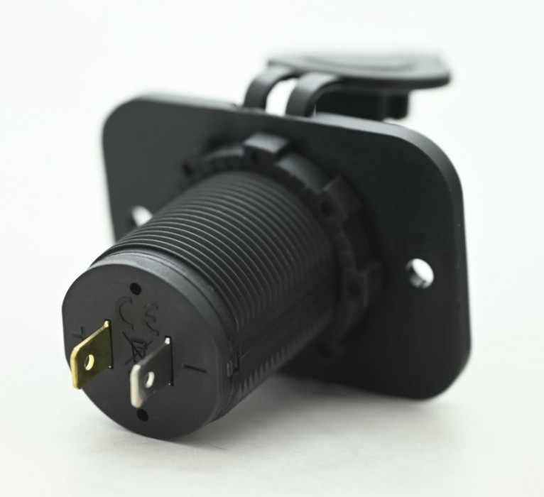 Jednoduchá montáž. Na předem určené místo vyřízněte otvor pro zásuvku a pomocí šroubů upevněte podložku zásuvky. Zásuvku propojte s 12V napájením vozidla pomocí přiložené kabeláže. Zasuňte zásuvku a na vnitřní straně zajistěte šroubovacím prstencem.