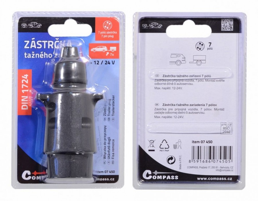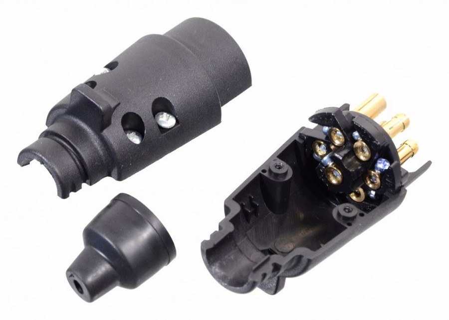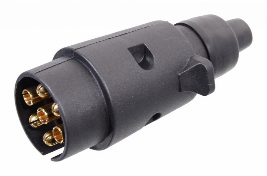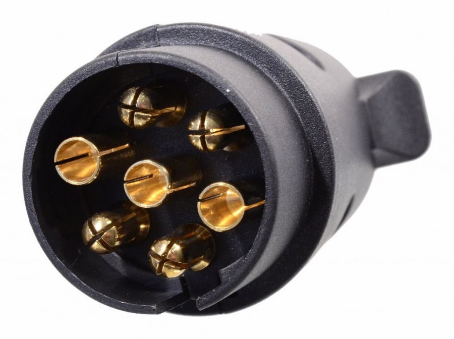 Zásuvka pro přípojná vozidla, 7-mi pólová, max. napětí 12V 24V, vhodná do karavanu, vyrobená z odolného plastu, dle normy DIN 1724, 7 pólů.