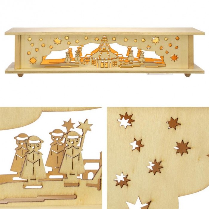 Svítící dřevěná dekorace se stane nevšedním a elegantním doplňkem Vašeho domova. Díky napájení na baterie lze vánoční dekoraci umístit kdekoliv v místnosti - na okno, krbovou římsu, na poličku, nebo na stůl. Díky provozu na baterie (3 baterie AA - třída krytí IP20 - testovaná bezpečnost) jste nezávislí na zásuvkách. Pomocí časovače můžete sami rozhodnout, kdy chcete osvětlení zapnout. Volně volitelná funkce časovače nebo nepřetržitého svícení.