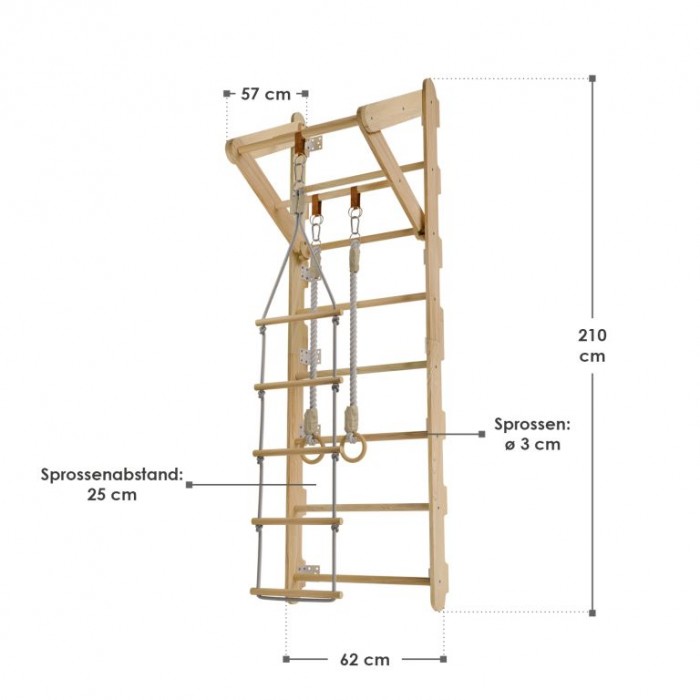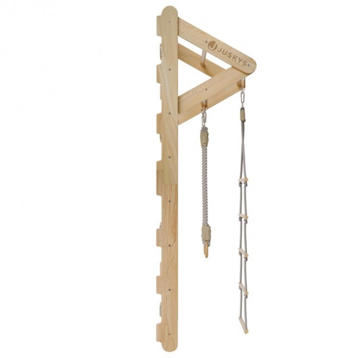 Žebřiny jsou vyrobené z kvalitního přírodního dřeva a pevně ukotvené ke stěně, takže vydrží i intenzivnější dětské výkony. Díky kompaktním rozměrům se hodí i do menších prostor. Zavěšené prvky lze jednoduše měnit podle nálady nebo věku dítěte. Výborně se hodí pro děti od 3 do 12 let a pomáhají budovat nejen sílu, ale i sebedůvěru.
