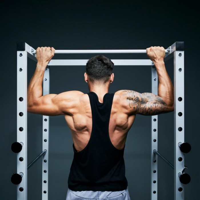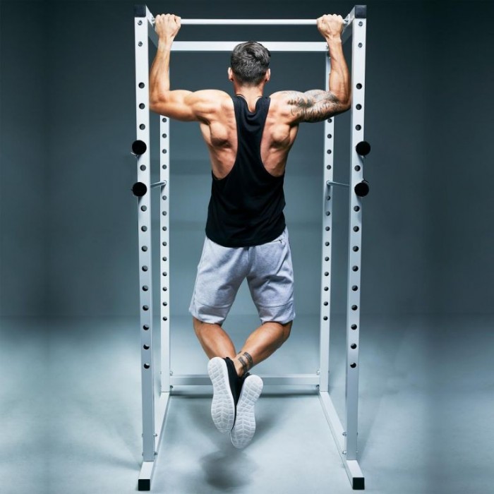Klec v bílé barvě od společnosti Gorilla Sports nabízí ideální řešení. Pokud svaly selžou, nastavitelné kovové vzpěry zachytí činku. Takto můžete bezpečně trénovat například dřepy s činkou na ramenou nebo tlaky na ramena. Rám klece je vyroben z pevných čtyřhranných ocelových trubek a stojany na činky jsou nastavitelné v 15 směrech. Kliky jsou jedním z nejúčinnějších cviků s mrtvou vahou pro zádové svaly, a proto jsou ideálním doplňkem tréninku s činkami.