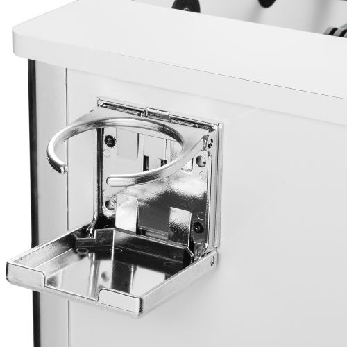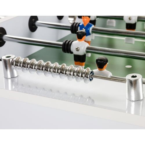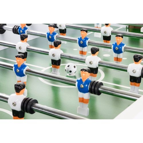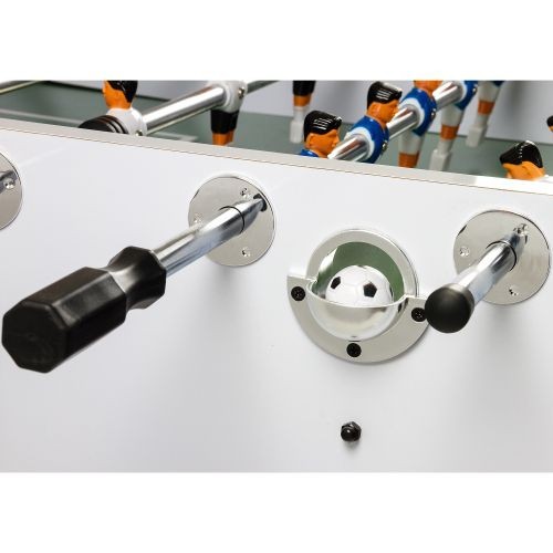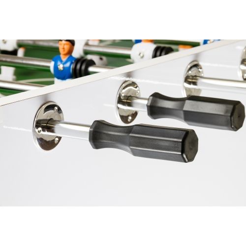 Kvalitní stolní fotbálek, který vás nadchne už srovnáním kvality a ceny. Tento fotbal má tělo vyrobeno z MDF a je vybaven čtyřmi výškově nastavitelnými ocelovými nohami (s chromovým vzhledem a gumovými nožičkami pro ochranu podlahy). Výhodou tohoto fotbálku jsou též držáky nápojů, protiskluzové rukojeti pro pohodlnější hru, malované figurky k našroubování a zkosené rohy, které zabrání uvíznutí míčku. Stůl je dodáván rozmontovaný, ale jeho montáž je velmi rychlá a snadná. Hrany jsou v chromovém provedení.