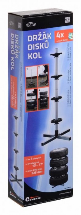 Držák disků kol, ideální pro uskladnění zimních či letních pneumatik. Držák zabírá jen velmi málo místa. Jednoduchá montáž, držák lze po použití opět jednoduše demontovat. Určeno pro 4 disky s pneumatikami o velikosti 13“ - 17“.