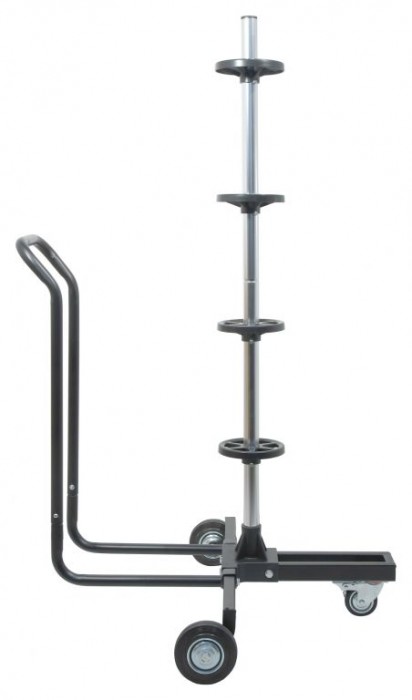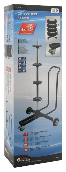 Držák disků kol, ideální pro dlouhodobé uskladnění zimních či letních pneumatik. Jedno z koleček je navíc bržděné, držák se tak nechtěně nepohybuje. Díky kovovému designu je zaručena stabilita zařízení i v plné zátěži. Jednoduchá montáž držáku zajišťuje snadné a rychlé použití. Určeno pro 4 disky s pneumatikami o velikosti 13“ - 18“ (max. 235/45 R18).