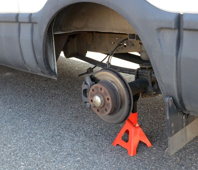 Podpěra pod auto, díky čtyřem nohám je velmi stabilní, má nastavitelnou výšku a je vybavena jistícím mechanizmem. Balení obsahuje dva kusy. Podpěry jsou velmi skladné a hodí se za každé situace při poruše na silnici.