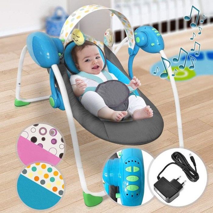 Dětské houpací lehátko s hudební funkcí, skládací, modré