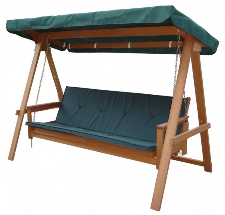Masivní zahradní houpačka z tropického dřeva MERANTI. Podušky a stříška v zelené barvě - součást balení. Velmi kvalitní produkt! Meranti je označení pro více druhů dřevin z rodu Shorea pocházejících z jihovýchodní Asie. Tato dřevina našla své uplatnění především v exteriéru na výrobu zahradního nábytku, oken a dveří pro svoji vynikající trvanlivost a dobrou opracovatelnost. Stejně jako atraktivním vzhledemvyniká Meranti vysokou tvrdostí, odolností vůči povětrnostním podmínkám a dlouhou životností.