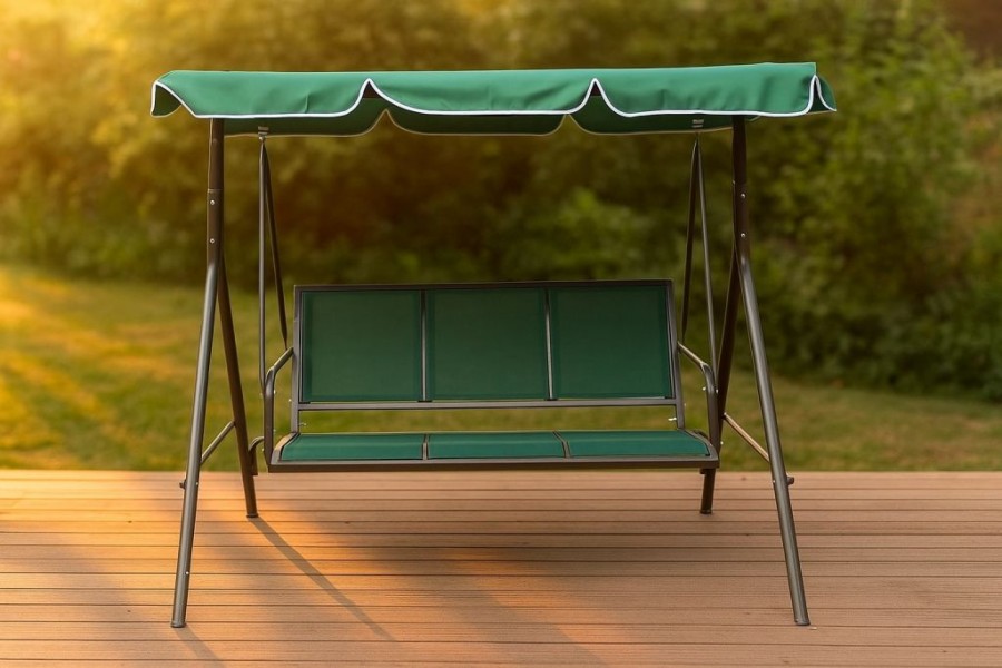 Zahradní houpačka 170×110 kovová zelená pro 3 se stříškou