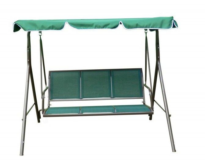 Popis: Zahradní houpačka 170×110 kovová zelená pro 3 se stříškou