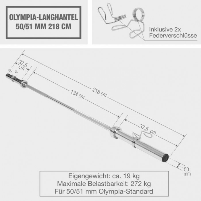 Tato olympijskáčinková tyč je perfektní, když trénujete s těžkými váhami, jelikož toho unese opravdu hodně. Vroubkovaná úchopová plocha vysoce kvalitní pochromované tyče zajišťuje bezpečné a pevné držení. Tyč je ideální pro tři základní cviky, které mnozí profíci považují za nejdůležitější ze všech: bench press, dřep a mrtvý tah.
