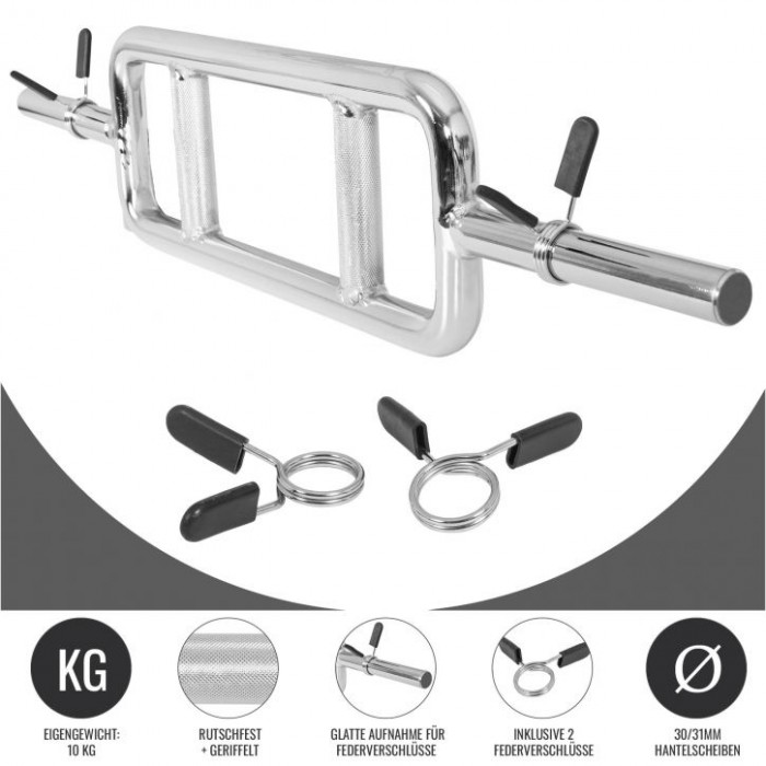 Univerzální tyč od Gorilla Sports je ideálním vybavením pro cílený trénink tricepsů. Její paralelní rukojeti umožňují přirozenou polohu rukou, která je šetrná k vašim kloubům. Vroubkování rukojetí zajistí pevný úchop za jakýchkoliv okolností. Přiložené zámky drží závaží pevně na místě.