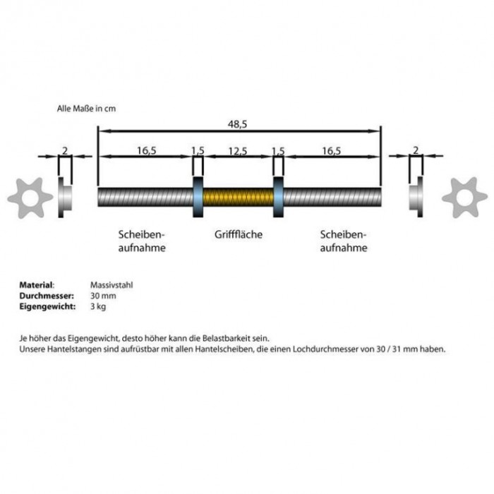 Stabilní chromovaná ocel je zárukou dlouhé životnosti. 30mm průměr úchopu padne do ruky, hvězdicové uzávěry pevně drží závaží. Snadná údržba a rychlá výměna kotoučů. Maximální zatížení 50 kg pro univerzální použití.