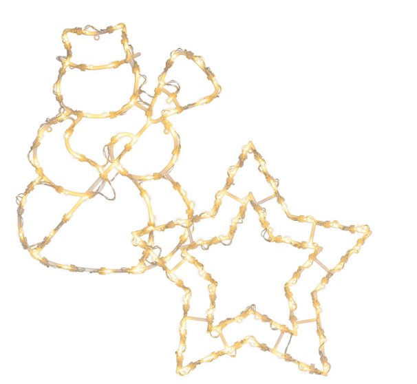 Popis: Sada okenních obrázků hvězda + sněhulák, teple bílá, 2 ks