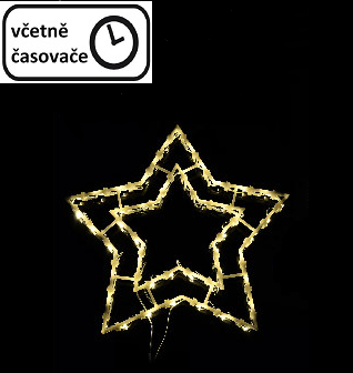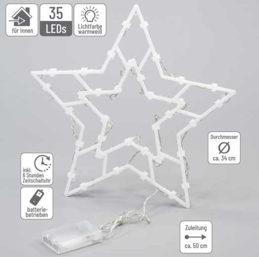 Popis: Vánoční dekorace na okno 34 cm, hvězda, 35 LED, teple bílá