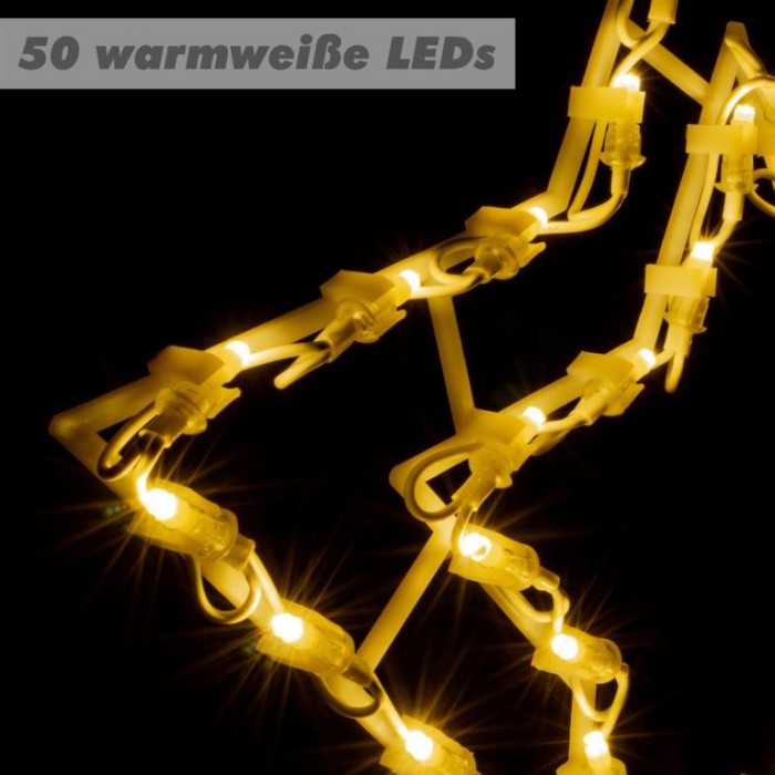 50 LED diod svítící hvězdy, které svítí příjemným teplým bílým světlem, vám zaručí nízkou spotřebu energie. Dodávaná délka této vánoční ozdoby je přibližně 1,5 m. Transformátor vánoční dekorace má stupeň krytí IP20 - testovaná bezpečnost. Náladové světlo pro váš večírek, v zimní zahradě, u vašich dveří, slavnostně vyzdobeného okna nebo obývacího pokoje.