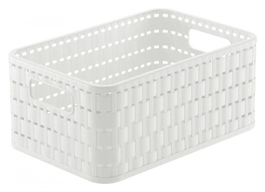 Moderní design a kvalitní provedení plastového úložného boxu ve stylu ratanového výpletu nabízí široké využití v celé domácnosti. Praktické úchytky pro snadné přenášení.