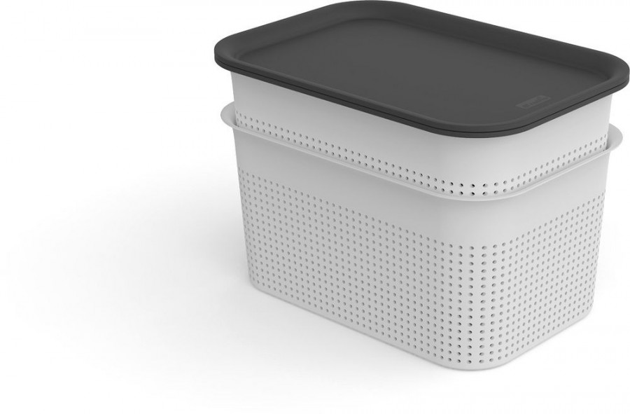 Úložný box s děrovanou strukturou. Jednoduchý a moderní design. Zaoblené rohy. Kvalitní materiál a provedení od švýcarské značky Rotho.