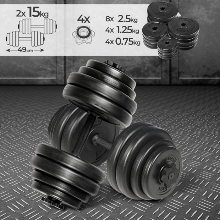 PHYSIONICS sada jednoručních činek, plast, 30 kg, 25 mm