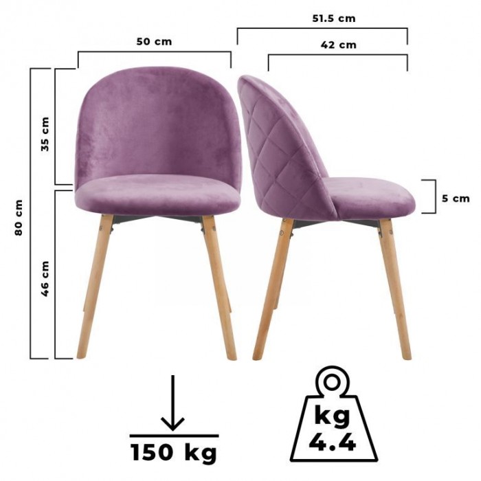 Popis: Miadomodo Sada jídelních židlí sametové, fialové, 2 ks