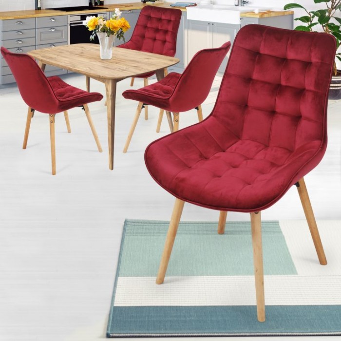 Popis: MIADOMODO Sada prošívaných jídelních židlí, červená 4 ks