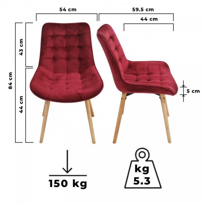 Nábytek ve skandinávském stylu je již delší dobu trendem v domácnostech i komerčních prostorách. Naše vintage jídelní židle upoutá pozornost a vnese do Vašeho domova jednoduchou eleganci. Stabilní opěradlo a tvarovaný sedák s čalouněním zajišťují pohodlí při sezení. Pevnost židle je zajištěna díky nohám z bukového dřeva. Židle se hodí do jídelny, kuchyně, obývacího pokoje nebo do haly, zkrátka kamkoliv, kde hledáte pohodlné a stylové posezení. Tyto moderní a zároveň vintage jídelní židle se sametovým sedákem a nohami z bukového dřeva jsou dokonalým doplňkem každého interiéru. Díky polstrování sedáku v tloušťce 5 cm jsou židle opravdu velice pohodlné.