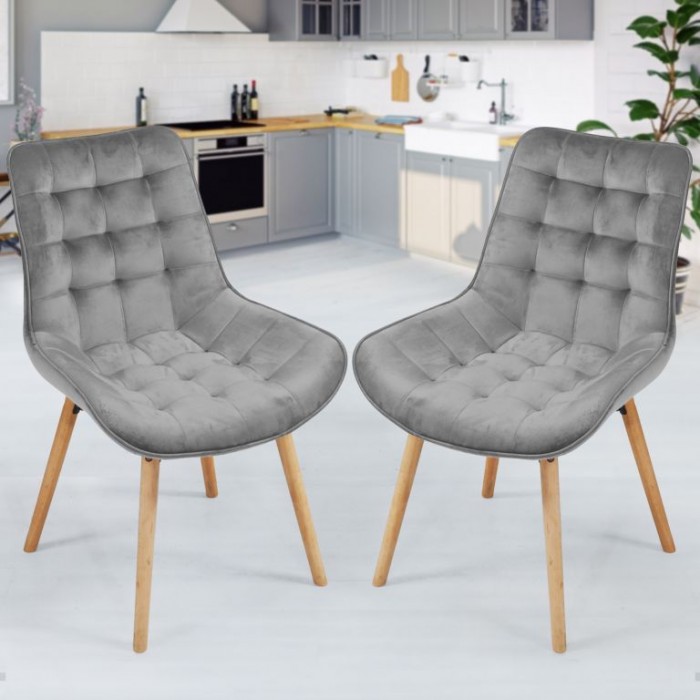 Popis: MIADOMODO Sada prošívaných jídelních židlí, světle šedá 2 ks