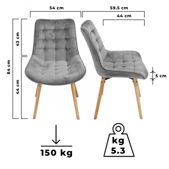 - celková hmotnost jedné židle: cca 5,3 kg