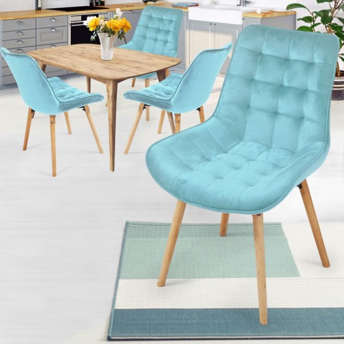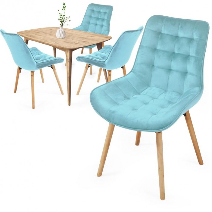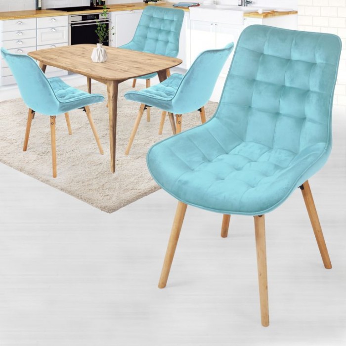Popis: MIADOMODO Sada prošívaných jídelních židlí, tyrkysová 4 ks